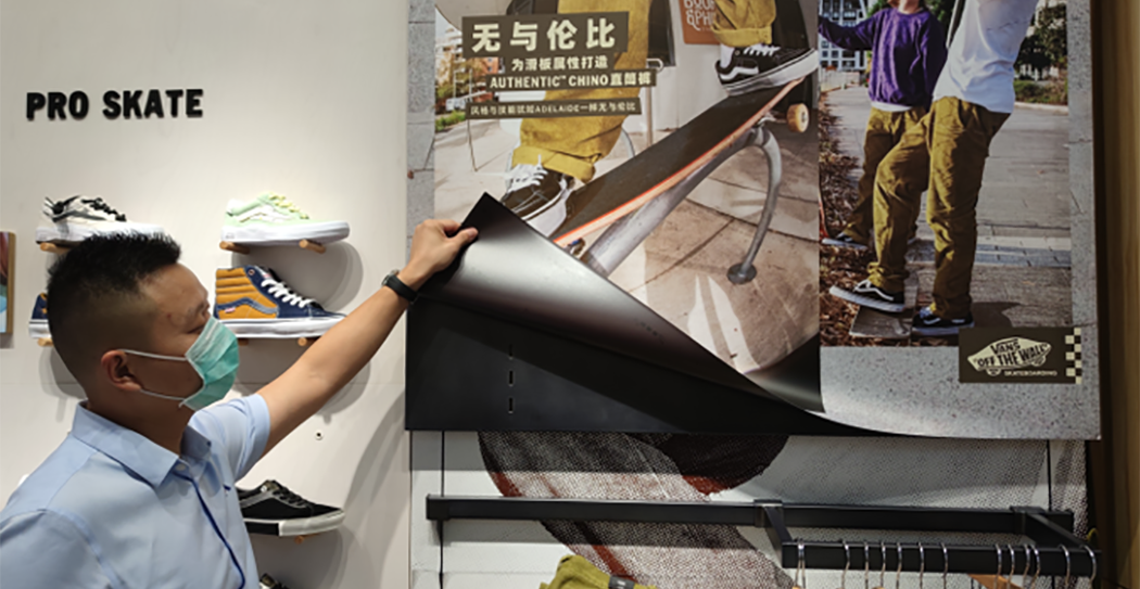 傳統(tǒng)背膠廣告方式由于分散噴繪制作及分散安裝,需要專業(yè)工人復(fù)雜安裝,安裝時(shí)間長(zhǎng),粘貼性能局限性導(dǎo)致噴繪制作各地參差不齊 ,材料與安裝容易失控,成本高,展示效果差,易起皺,更換難度大,殘膠清理費(fèi)時(shí)費(fèi)力。