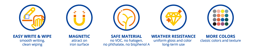 Newlife’s Chalkboard-Mag is made of flexible permanent magnet and chalk PP or PVC film. It is able to attract on iron board, mag-paint and other ferrous surface, and free to remove and reposition, without bubbles and residue. Chalkboard-Mag has wide format up to 1.2M, unlimited length, compatible for different kinds of chalks, great quality of writing and erasing, good weather resistance, safe to use. It has more than 30 classic colors.